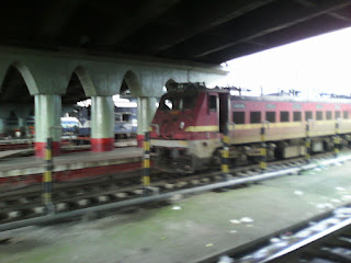 I went up to the under repair platform number 15,to have a good look at the train. Really Pitiable condition!Dust had gathered all around,some of the windows panes were broken, urchins were making merry on the roof. I went up to take some pictures of the train. Those urchins suddenly became very shy and ran away! Meanwhile the lady on the PRS crooned "............ HWH-MECHEDA LOCAL 13 no platform theke charbe.......repeat in Hindi and eng..."
