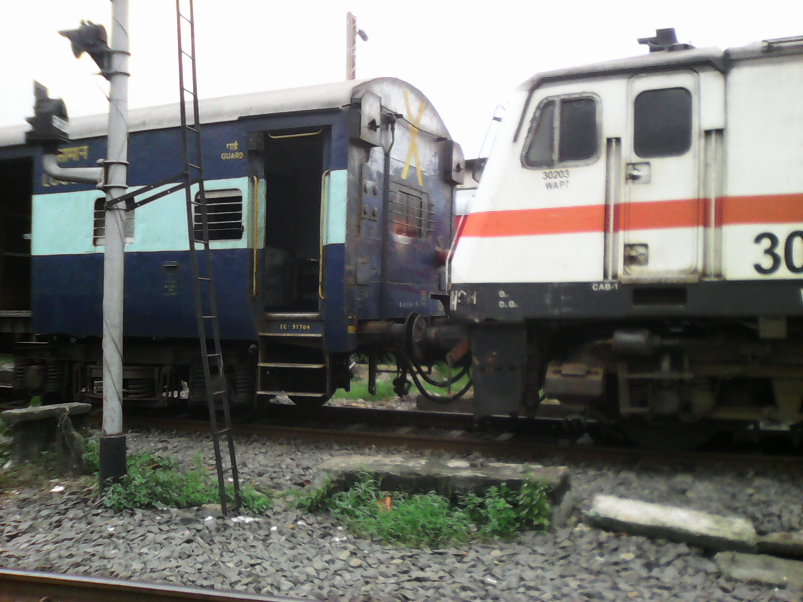 To see my loco link I dashed out of my coach, and almost ran to the front of the train. It was a shiny WAP7 HWH 30203 ready and rearing to tear away the Bengal landscape with the Coalfield Express, at it's tow.